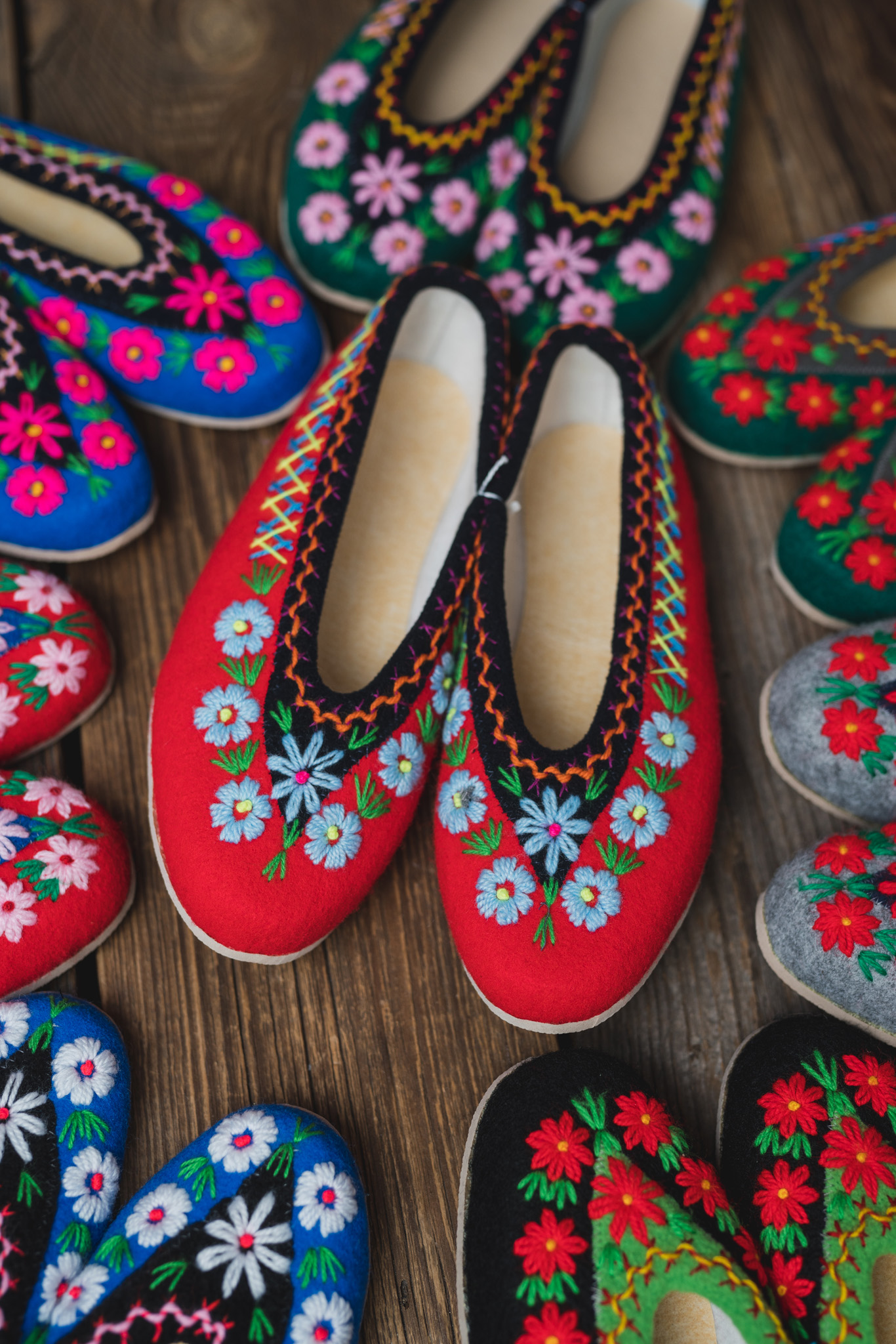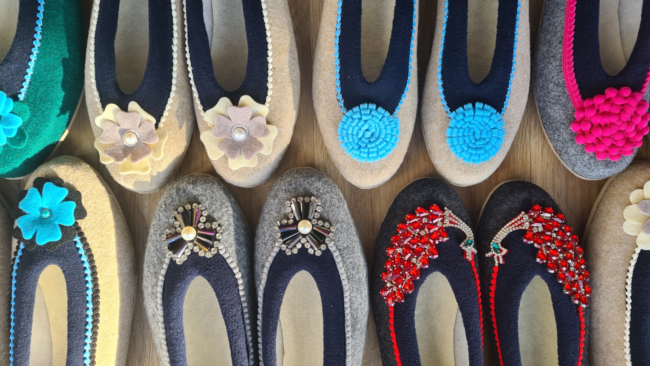 Witajcie w świecie filcu i ręcznie robionych pantofli domowych. Kapcie filcowe oferujemy w 2 kategoriach: kapcie ręcznie haftowane w urocze stokrotki oraz kapcie z ozdobami (filcowe kwiatki, rozety, cyrkonie etc.). Oferujemy różne kolory, różne rozmiary, pojedyncze wzory. Piękne i unikatowe – idealne na prezent!