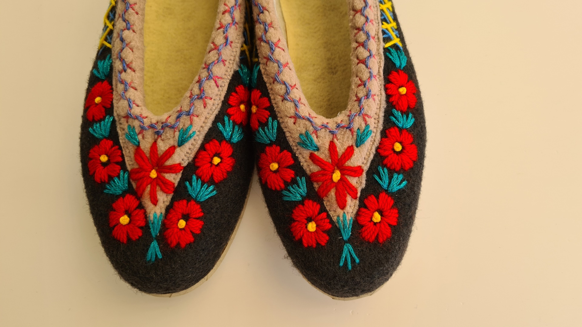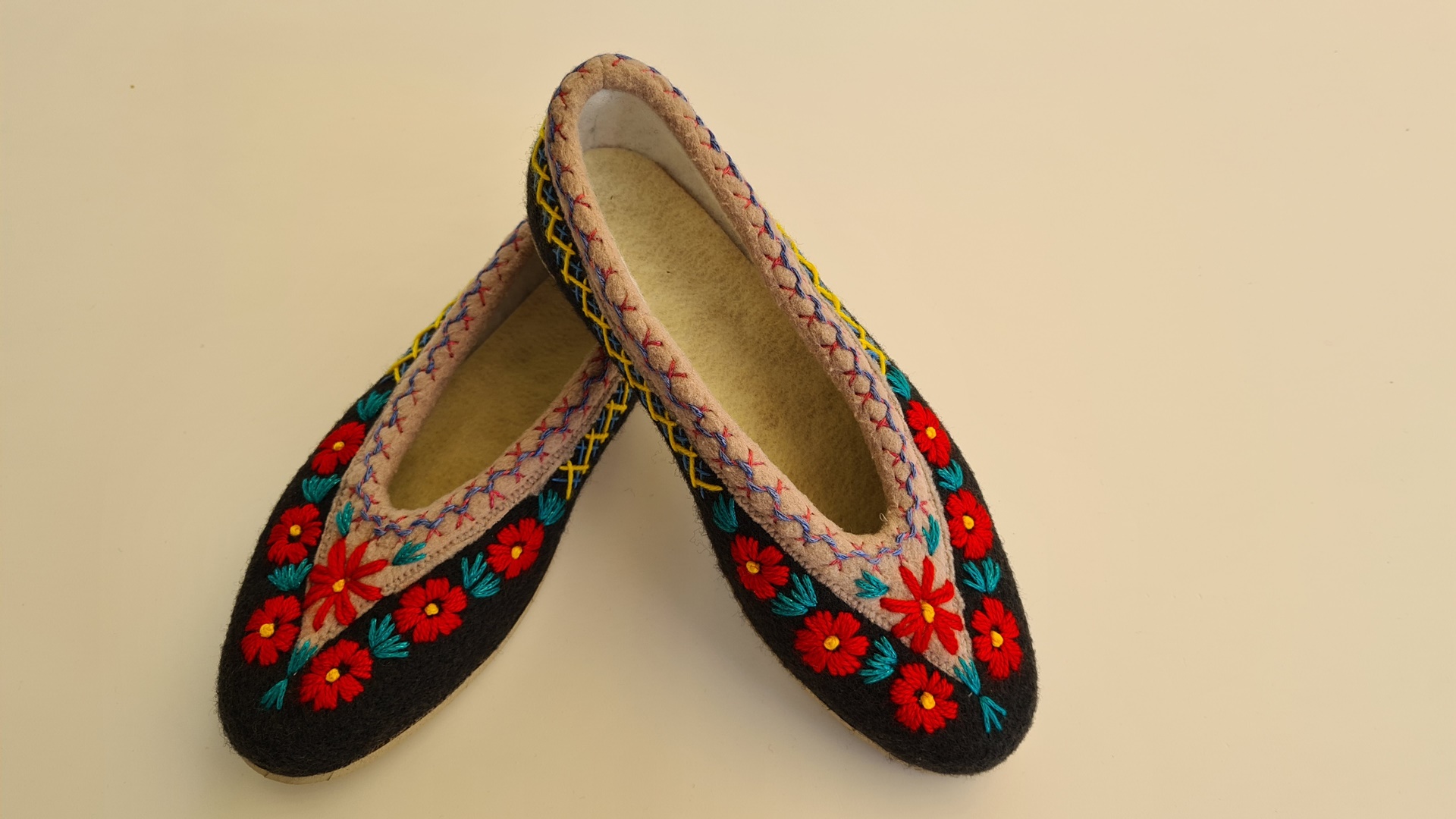 Kapcie/ pantofle domowe z filcu. Ciepłe i trwałe, w całości wykonane ręcznie.