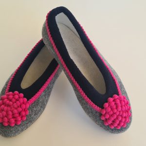 Wykończone filcowym kwiatkiem. Wzór jest niepowtarzalny!