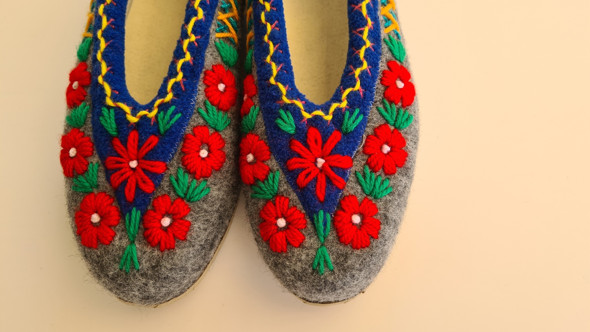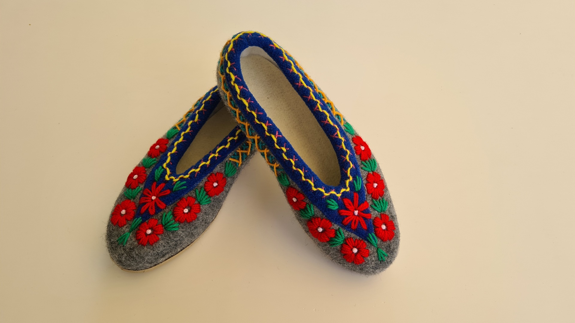 Kapcie/ pantofle domowe z filcu. Ciepłe i trwałe, w całości wykonane ręcznie.