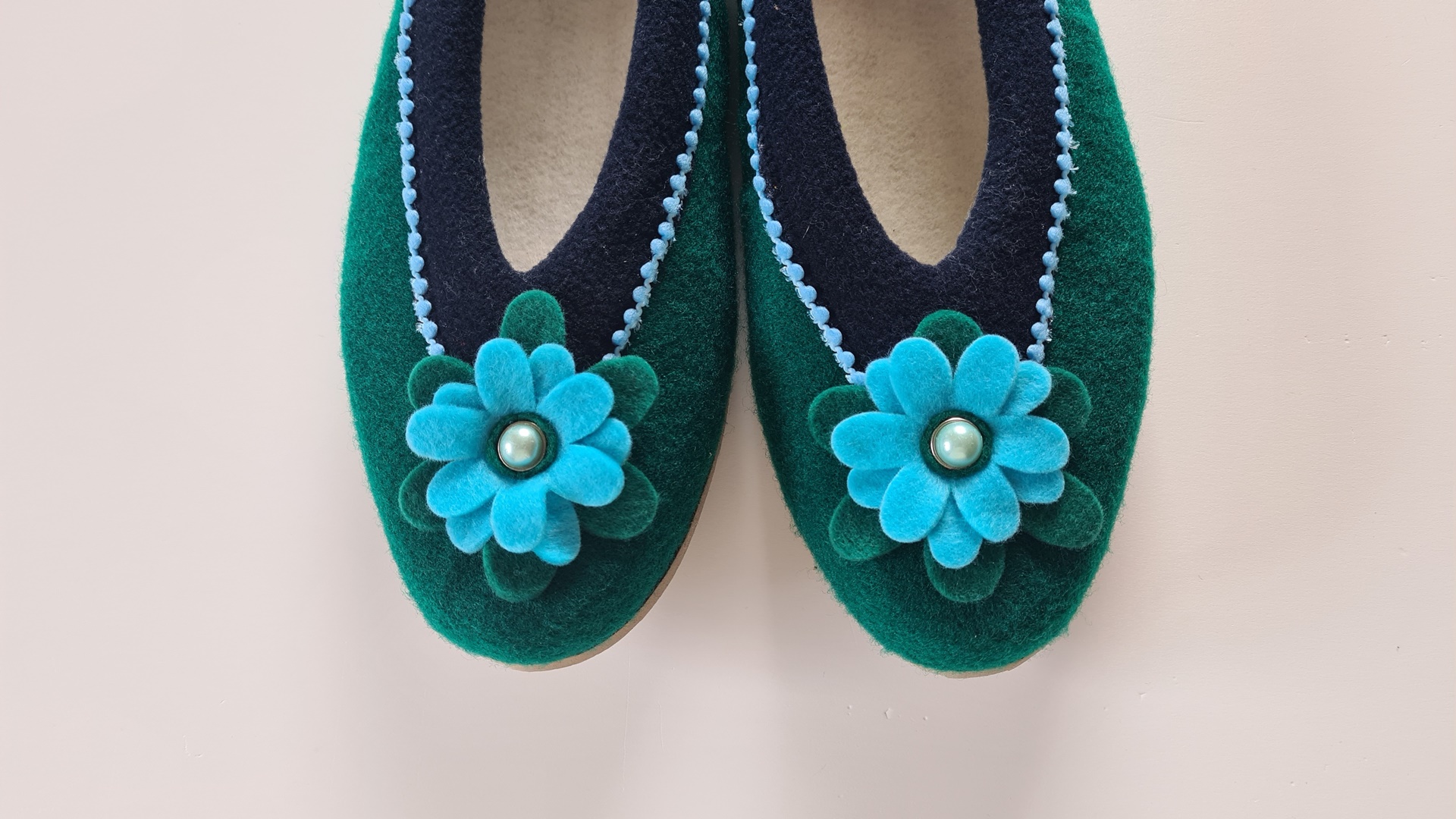 Kapcie/ pantofle domowe z filcu. Ciepłe i trwałe, w całości wykonane ręcznie.