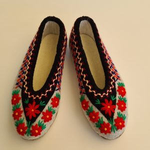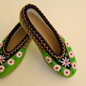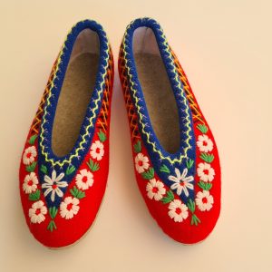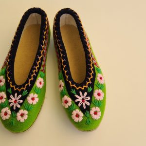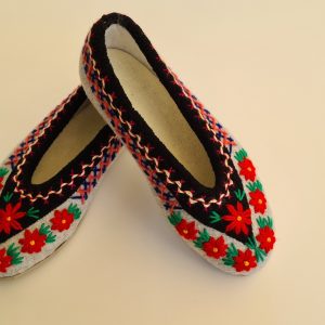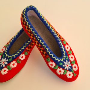 Kapcie/ pantofle domowe z filcu. Ciepłe i trwałe, w całości wykonane ręcznie. Wykończone pięknym, ręcznym haftem. Wzór jest niepowtarzalny! Od spodu – odporna podeszwa gumowana. Można prać (nawet w pralce). Zrobione w Polsce / Handmade in Poland